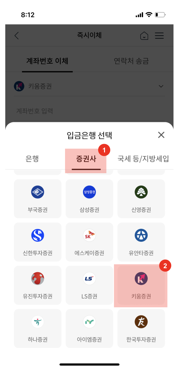증권사 계좌로 현금이체