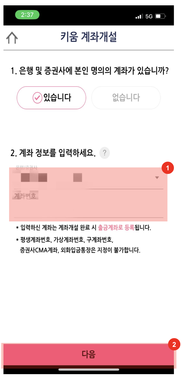 은행 및 증권사 계좌가 있으시면 계좌 정보를 입력해 줍니다.