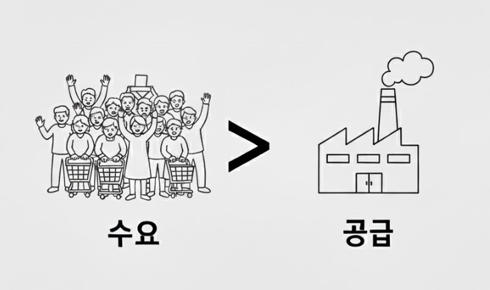 가장 기본적으로는 물건을 사려는 사람(수요)이 팔 물건(공급)보다 많을 때 가격이 오릅니다.