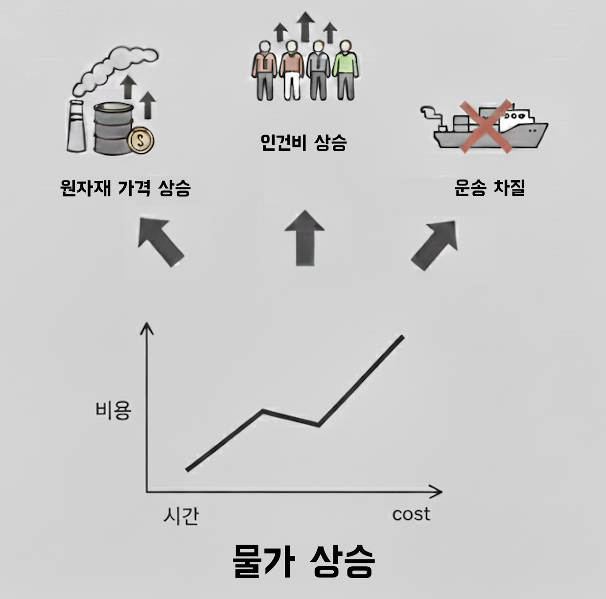 여기에 물건 만드는 비용까지 오르면서 발생하는 복합적인 경제 현상이라고 할 수 있답니다!